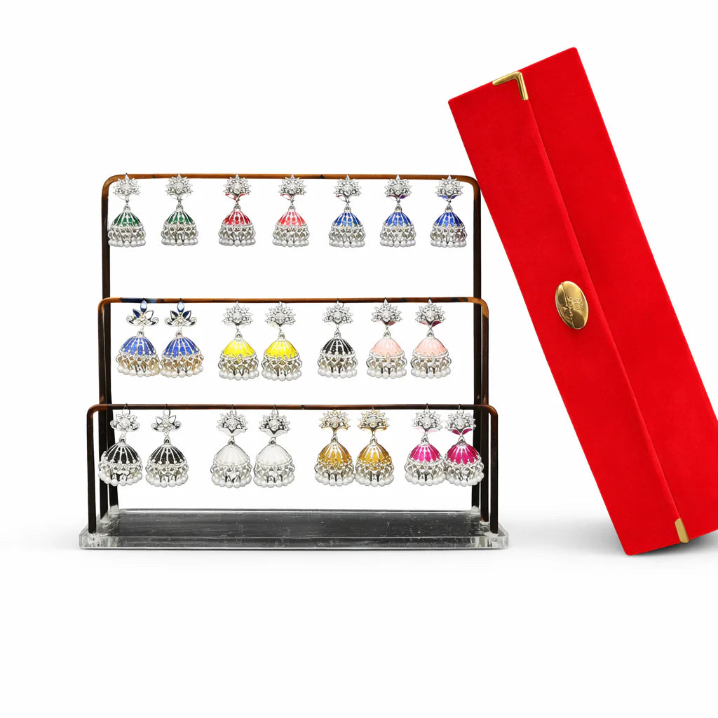 16 Pair Multicolor Jhumka Earrings Set – Traditional Ethnic Earrings Collection Box