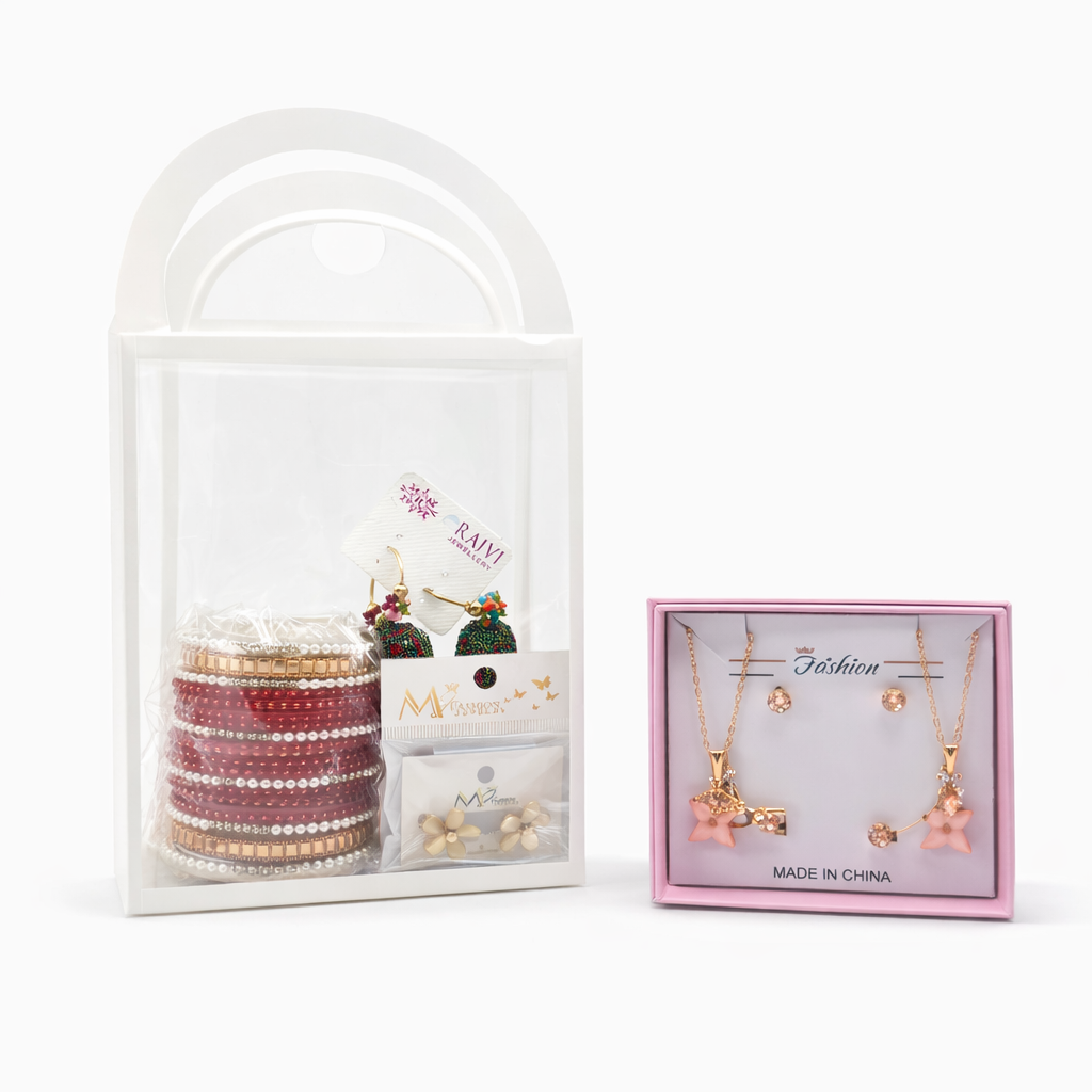 Pink Jhumka Earrings, Bangles & Studs Gift Hamper – Elegant Ladies Jewelry Gift Box