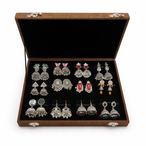 12 Pair Premium Oxidized Jhumka Earrings Gift Box